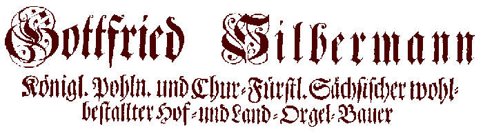 Gottfried Silbermann (1683-1753) and Johann Sebastian Bach (1685-1750) were contemporaries and worked together as colleagues and friends. Bach and Silbermann shared an interest and advanced knowledge of acoustics as applied to the voicing and location of organs. They would also work together in their latter years on the escapement mechanism for the first Fortepianos - Silbermann was to make several for Frederick the Great, and it was in trying out one of these in the Palace of Sans Souci, Potsdam, that Bach elaborated on the King's theme for the Musical Offering. Just as Bach became Honorary Court Composer at Dresden, so likewise did Gottfried Silbermann receive the title of Honorary Court and State Organ Builder to the King of Poland and Duke of Saxony at Dresden. On a personal level we may be certain that Silbermann was a frequent visitor at the Bach home in Leipzig – he was godfather to Carl Philipp Emmanuel who, like his brother Wilhelm Friedemann, held him in high regard. Gottfried's father was a craftsman-woodworker from whom no doubt the young Gottfried learned the precision woodworking, so vital to avoid any wind-leakage, which is one of the hallmarks of his instruments. From 1702 to 1707 he studied the arts of organ-building with his elder brother Andreas in Strasbourg, and for two of these years with Thiery in Paris. Andreas himself had been greatly influenced by the more "southern" ideas and sounds of the German/Italian builder Casparini, who built many fine instruments in northern Italy including Venice. Casparini's finest instrument was built in Goerlitz on the (present-day) Polish-German border from 1697-1702. It has three manuals and 56 stops including a particularly large pedal section of 21 stops. This instrument is noteworthy in the present context as Andreas Silbermann played a major role in its construction, assisting the then 80-year-old Casparini. A condition of his elder brother's tutelage was that Gottfried would not work in his brother's "territory"! So in 1710 Gottfried returned to his native Saxony and set up shop centrally in Freiberg, bringing with him qualifications and certificates which immediately established his reputation locally. His first commission was for a small, one manual and pedal, 15-stop organ for his home town of Frauenstein, which Silbermann built "at cost", waiving his personal fee and thus displaying a business sense which would become a feature of his career. So well-received was this first instrument, completed in 1711, that in the same year Freiberg Cathedral invited the young builder, then only 28 years old, to construct a new organ of three manuals and pedal with 44 registers. This was completed in 1714. Business moved briskly thereafter, and Silbermann's instruments would finally total 45, all within the relatively narrow area of Saxony. Such did his reputation grow, that Gottfried Silbermann felt confident to request an official title from Frederick I, at that time King of Poland and Duke of Saxony. His request is dated 10th June 1723 and on the 30th June he was granted the privilege he had sought: "Honorary Court and State Organ Builder to the King of Poland and Duke of Saxony". It sounds even better in Baroque German!