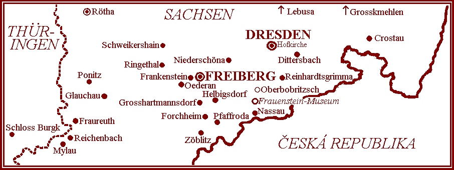 ![]() Why not begin our tour in the picturesque little town of Frauenstein; it is close to the village of Kleinbobritzsch where Silbermann was born and indeed the young Gottfried went to school in Frauenstein. The town is also the location of Silbermann's first instrument (regrettably lost in a fire only a few years after its construction), and is centrally located in the heart of "Silbermann territory". Most importantly, Frauenstein is home to the Gottfried Silbermann Museum, the only museum dedicated to one builder.