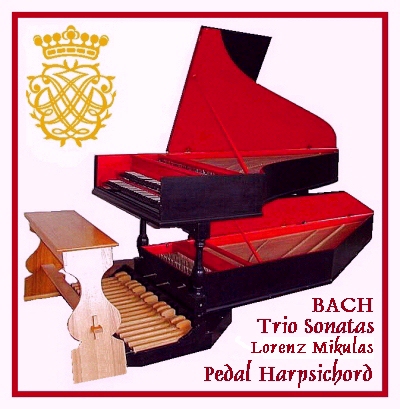 Another point which may be made about the pedal-harpsichord, one on which there is wide agreement among those who play the instrument, is that it is far more demanding than the organ. The precision and clarity of the pedal-harpsichord, heard in close proximity to the player without the confusion of resonating acoustic, requires considerably more precision. Several professional organists of high standing whom we have recorded have quietly gone away for further practice when confronted with a pedal-harpsichord. Forkel, Bach's first biographer, who drew heavily on the reminiscences of Carl Philip Emmanuel Bach, states categorically that Bach composed these Trio Sonatas in order to perfect the pedal technique of his son Wilhelm Friedemann, an objective which, as Forkel further adds, appears to have been admirably achieved. Despite the lively, tuneful character of these almost dance-like pieces, they do in fact conceal a wealth of technical difficulties, almost traps, for the player, particularly in demanding total independence of hands and feet. Complex rhythms and note values are set in deliberate conflict as between hands and feet. |