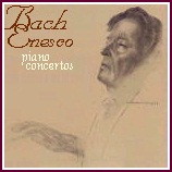 The solo pianist was, of course, Céliny herself (far right in the photo), joined for the concertos for 2 and 3 pianos by Jean-Jacques Painchaud (left above), and Françoise Le Gonidec, one of her old students (standing next to Enesco, seated). Yvette Grimaud (not shown) played the fourth piano in 1065. Included in the series were two triple concertos, BWV 1044 and 1057, together with the 5th Brandenburg. Additional soloists were Jean-Pierre Rampal and his pupil Gaston Crunelle, flutes, with violinist Christian Ferras, pupil of Menuhin and whose father had studied with Marcel Chailley. Françoise Le Gonidec recalled, many years later, that Enesco directed sitting down, and more with his eyes than with his baton which he was barely able to lift. Nonetheless, Yvette Grimaud recalls (2005) the spirit of tranquility which pervaded the recording sessions, an impression which is clearly conveyed in the performances themselves. With the addition, to fill up the last LP side, of Bach's Italian Concerto BWV 971 for keyboard solo performed by Céliny herself, the grand project was completed and joined the ranks of early long-play records, handsomely boxed and annotated. Enesco however barely lived to see the completion of publication; he passed away on May 4th, 1955.